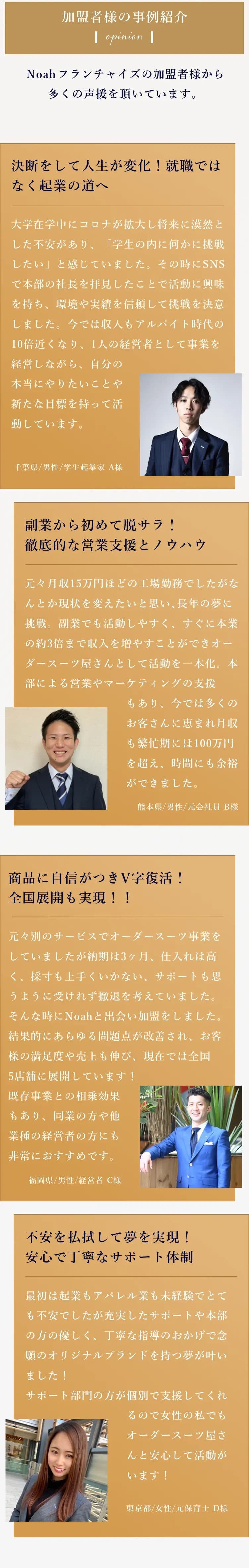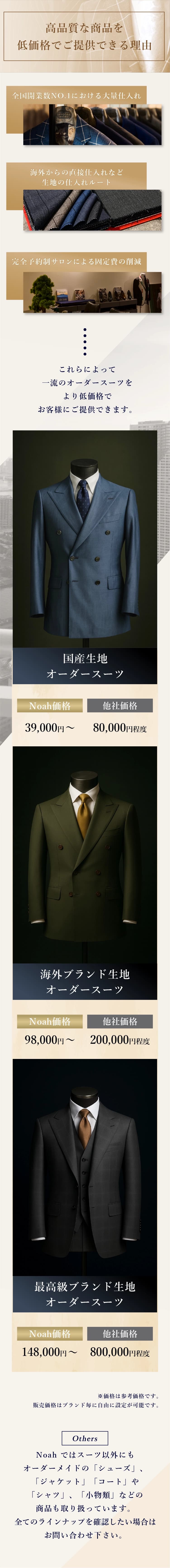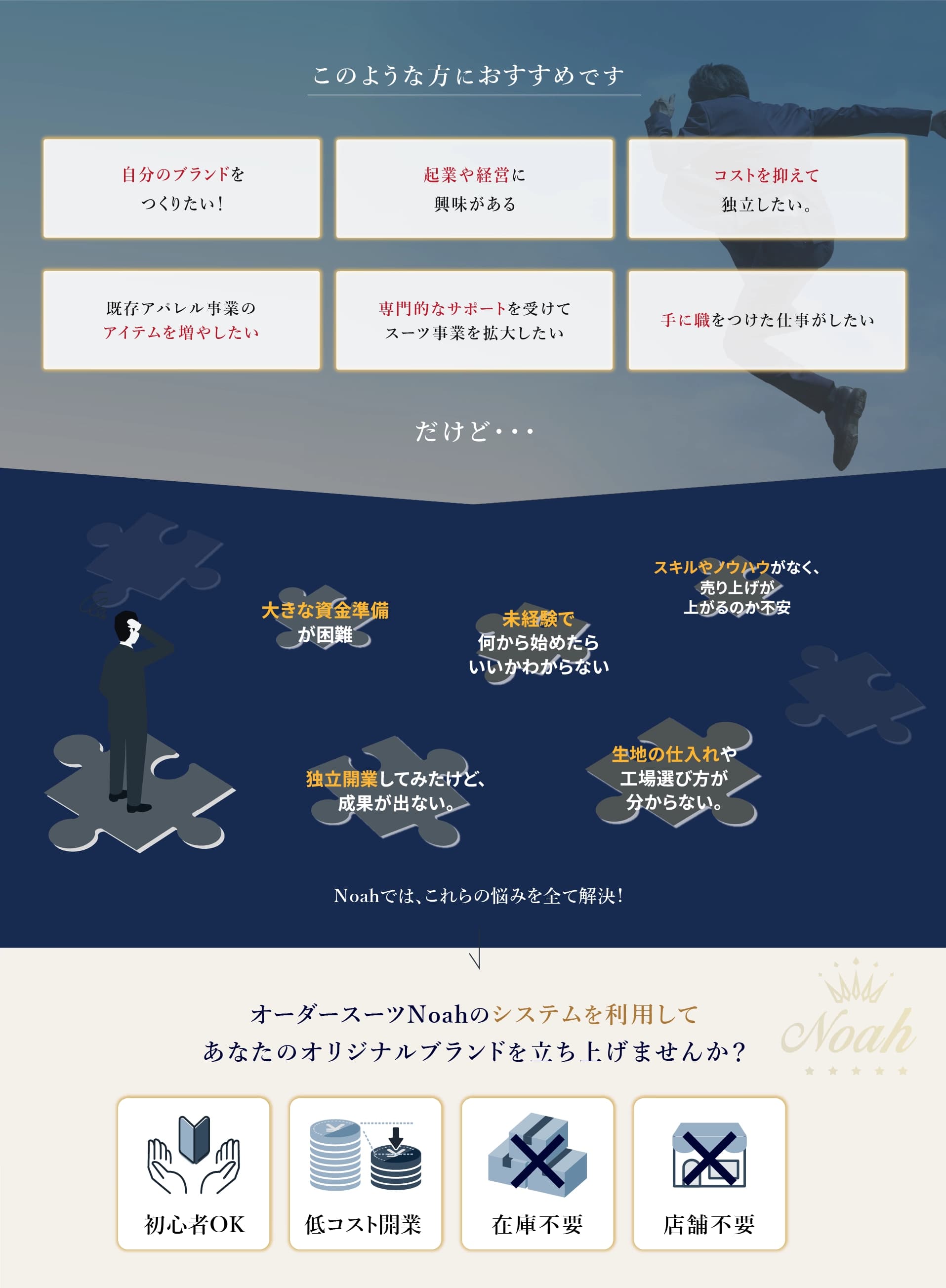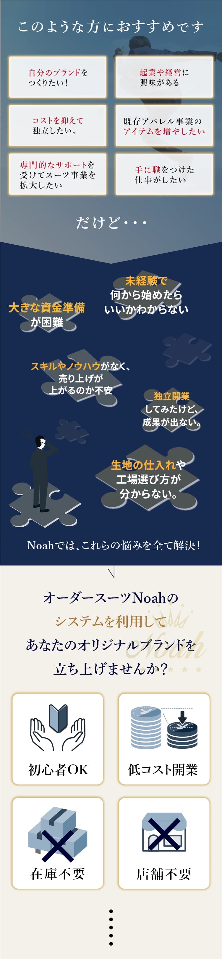 業界の発展に向け、オーダースーツサロンの無償の提供を実施。